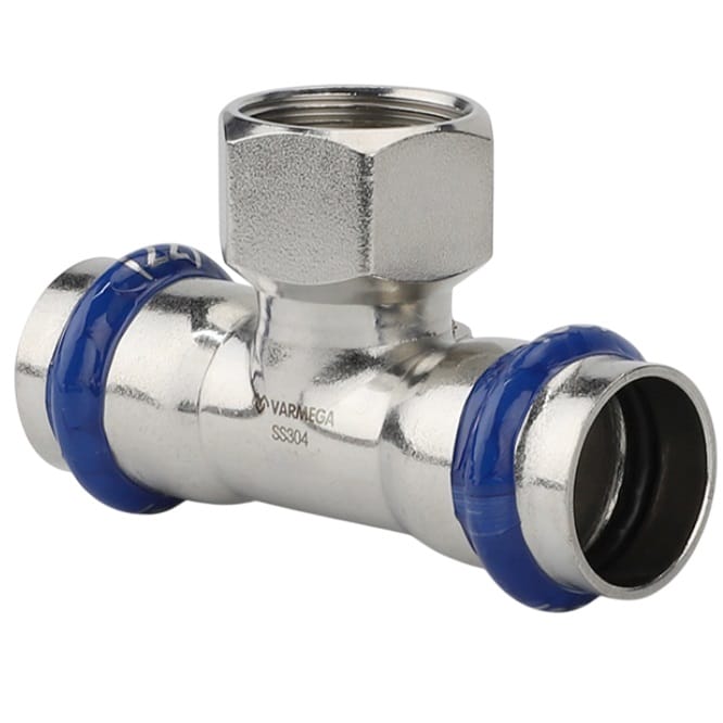 Тройник раструбный с внутренней резьбой Varmega Inox Press 22хВР1/2″х22